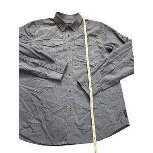 PrAna Men's Medium button up Hiking Outdoor shirt Blue double chest pocket nylon blend. Good pre-owned condition no stains no holes measurements provided in pictures are approximate please check measurements for proper fit