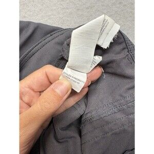 The PrAna Monarch Convertible Pants are versatile outdoor pants designed for women in size 10. Made from a durable mix of nylon and spandex, these flare-bottom pants feature a solid gray color and a mid-rise fit for comfort. With a zip, button, and drawstring closure, these machine washable pants offer both style and functionality. The cargo style and stretch feature make them suitable for outdoor activities in all seasons, while the woven fabric ensures durability and quality. Perfect for outdoor enthusiasts looking for a reliable and stylish pant option.