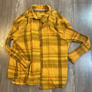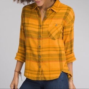 PrAna Mustard Yellow Plaid Fillary Button Down Top M
