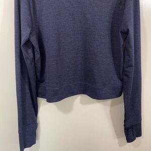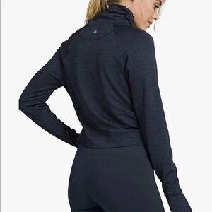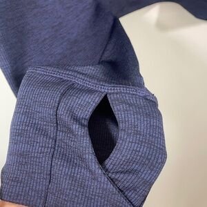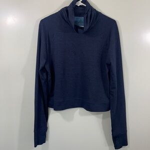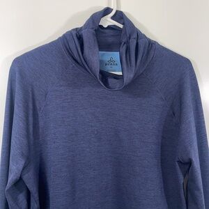 PrAna Navy Blue Gleeson Sweater, turtle neck comfy and breathable for exercising, has thumb holes