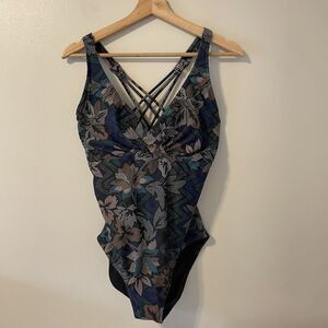 PrAna One Piece Swim Suit Built In Bra Adjustable Straps Sz 38D L