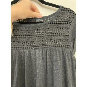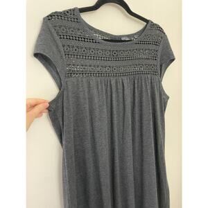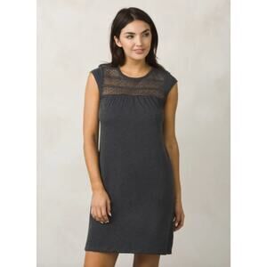 PrAna Organic Cotton Gray Scoop Neck Cap Sleeve Lace Insert Day Dream Dress XL