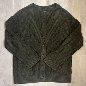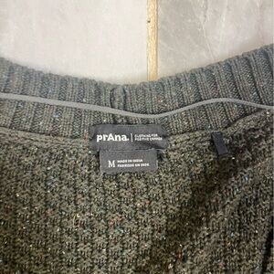 Embrace warmth and style with the Prana green cardigan, featuring a classic V-neck and a cozy cable knit texture. This relaxed fit sweater is perfect for layering, offering a timeless look with its ribbed cuffs and hem. Ideal for adding a touch of elegance to your wardrobe, this cardigan is crafted for comfort and versatility.