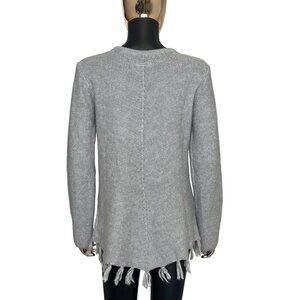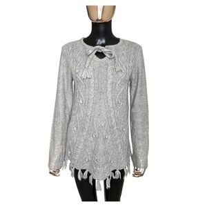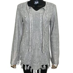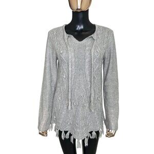 PrAna Shelby Poncho Cable Knit Fringe Sweater Gray Medium Boho Cozy Wool Blend