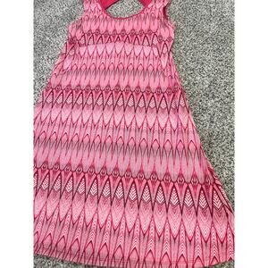 PrAna Sleeveless Dress Size Small Pink Geo Print Travel Casual Yoga Boho Stretch