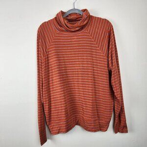 PrAna Sol Protect Turtleneck sz XL women relaxed fit pockets gingerbread stripes