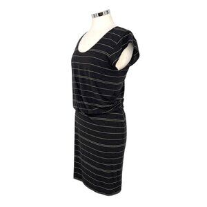 PrAna Striped Janey Foundation Dress Black Charcoal White Tencel Size Medium