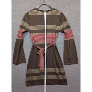 PrAna Sydney Sweater Dress Womens Small Brown Pink Striped Bell Sleeves