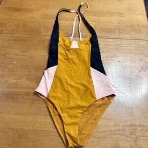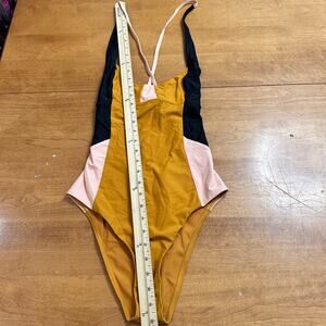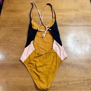 PrAna Tulum One Piece Deep Solstice Colorblock Black Gold Pink Vacation SPF