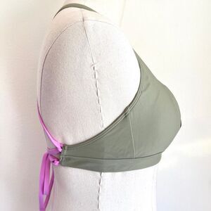 Brand new with tags PrAna Tulum swim top in a sleek black, olive green, and purple colorblock design. Features a supportive halter front with an eye-catching crisscross and wrap-tie back for a secure, adjustable fit. Perfect for surfing, yoga, or lounging. Eco-conscious construction. Multiple sizes available, photos of size S, no flaws.