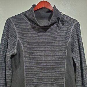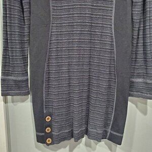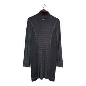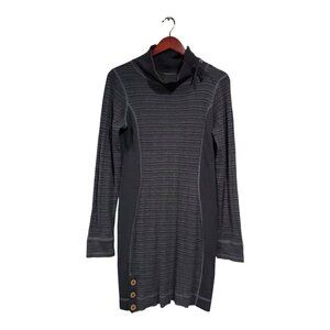 PrAna Women's Coal Kelland Turtleneck Wool-Blend Sweater Dress Black Stripe Sz M