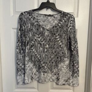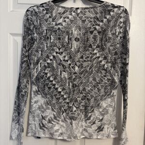 PrAna Women's Long Sleeve Pullover Shirt - Gray and White Print - Size XL