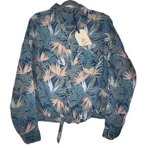 NWT women’s PrAna 100% organic cotton button up shirt. Waist length with a tie up at the bottom. Front chest pocket. Very light cotton, soft great as an over shirt for the summer. Retail $69…IYKYK