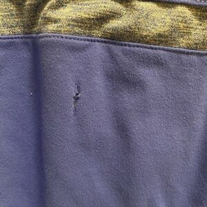 Has a hole in the back of the pant ( please see picture for reference ). Has slight pilling Inseam 22”