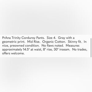 🌟PrAna Trinity Corduroy Pants sz 4🌟