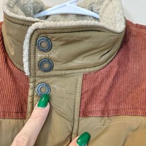 PrAna Waylen Corduroy Puffer Tan & Brown Metal Button Snap Up Vest Men's Medium