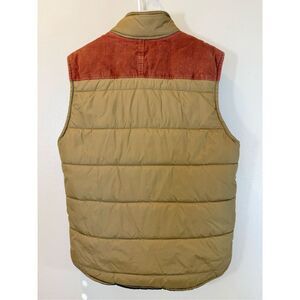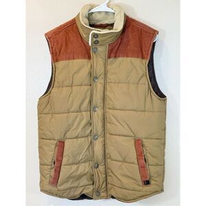 PrAna Waylen Corduroy Puffer Tan & Brown Metal Button Snap Up Vest Men's