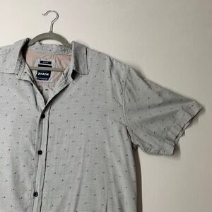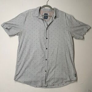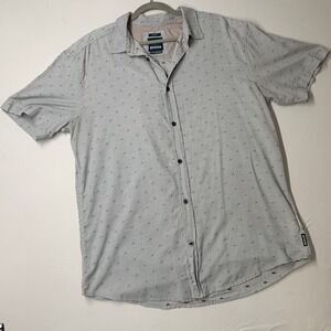 PraNa Button Down Shirt Men XXL Gray Embroidered Short Sleeve Button Up Casual