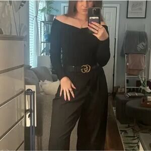 black jersey fabric and foldover off-the-shoulder neckline create a chic sultry vibe. ruched sweetheart neckline. Ballerina, romantic, coquette, fairy vibes