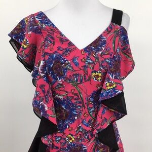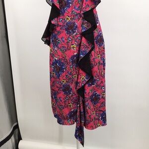 Prabal Gurung Collective Midi Dress Womens 0 Pink Blue Floral Ruffle Boho