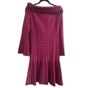 Prabal Gurung Collective Stripe Off The Shoulder Dress Knit Raspberry - Sz 4