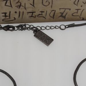 This Prabal Gurung necklace showcases a sleek, modern design with three parallel black cords that elegantly drape around the neck. The geometric style and medium to long length create a sophisticated and contemporary look, perfect for adding a touch of elegance to any ensemble.