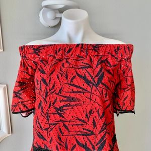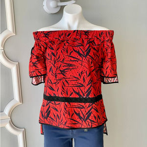 Prabal Gurung Off The Shoulder Printed Eyelet Blouse Size 6