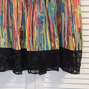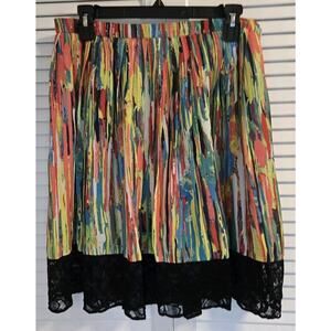 Prabal Gurung Pleated Skirt Lace Paint Brush Print A-Line Colorful Sz 10 BOHO