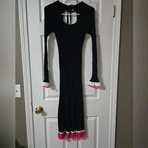 Prabal Gurung Pleated Sweater Sheath Dress, Back Cut-Out, Midi, Colorblock, EUC!
