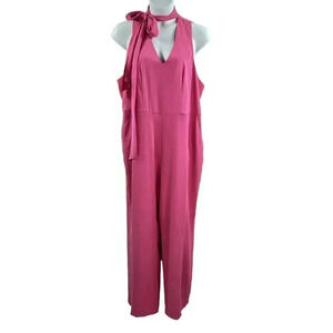 Prabal Gurung Wide Leg Tall Jumpsuit Romper 20W Pink Neck Bow Detail Barbiecore