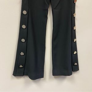 Prabal Gurung Women's Black Silk Wide Leg Flowy Pants With Gold Buttons Size 4