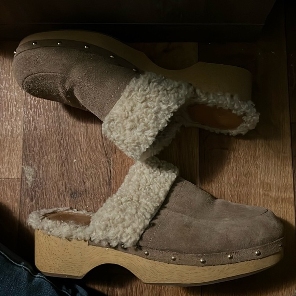 These are a pair of clogs/mules the brand is Crown Vintage. They have fur in them and gems on the side making a fashion statement! Only worn about 2 times