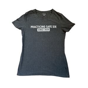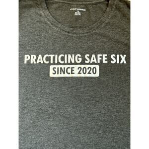 “Practicing Safe Six Since 2020” T Shirt Size Large Made by Jan Sew Knot Right