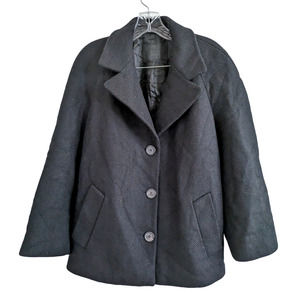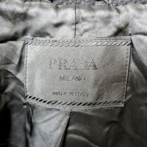 Prada 100% Virgin Wool Black Woven Pea-Style Coat Size 42 Medium