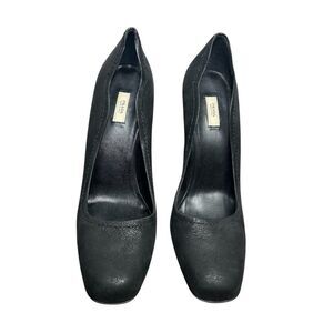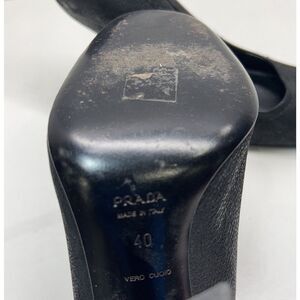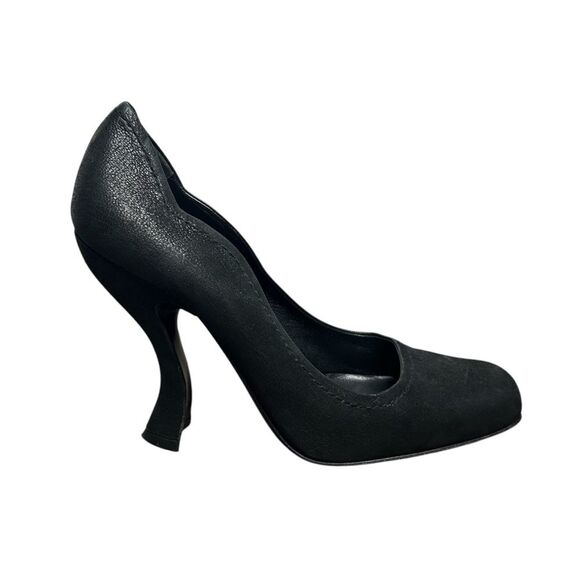 Prada 2004 Black Leather Scalloped Sway Curved Heels Size 40 Y2K