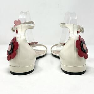 Prada 2017 Ivory Patent Leather Floral Appliqué Flat Sandals Size 39