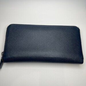 Prada 2ML317 Saffiano Leather Zip Around Wallet - Dark Blue - Preowned