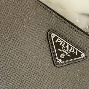 Prada 2nh024 Small Grey Saffiano Leather Pouch