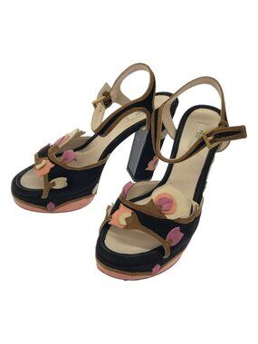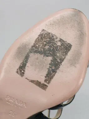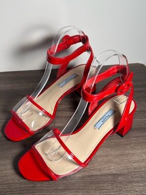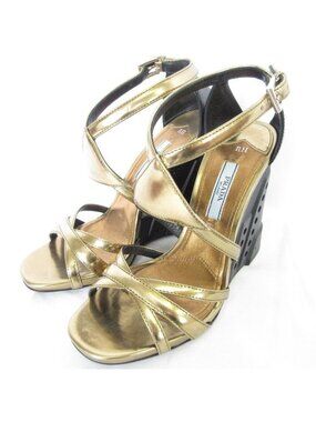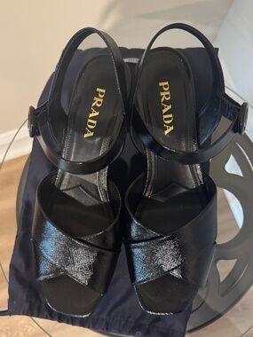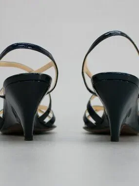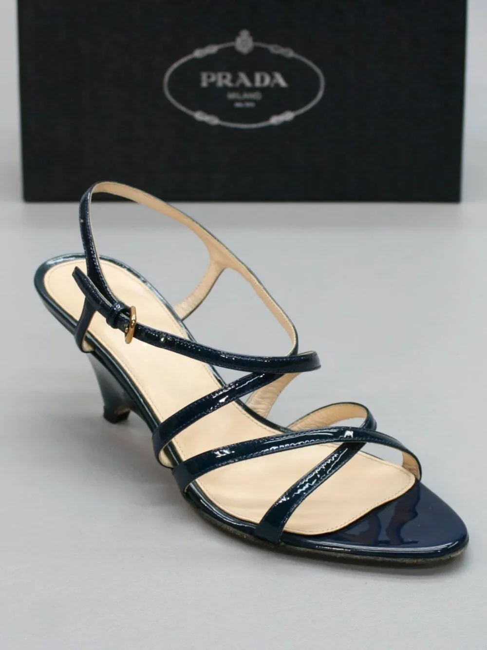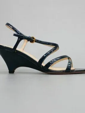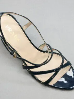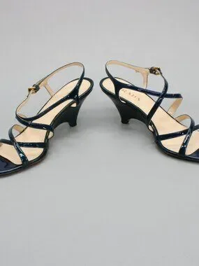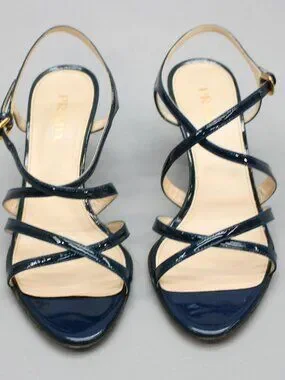 Prada 36 Ladies 6 Blue Patent Leather Slingback Heels Strappy Shoe Sandals Italy