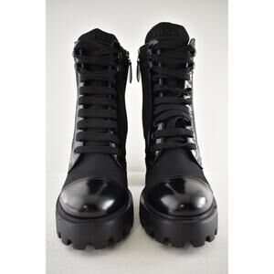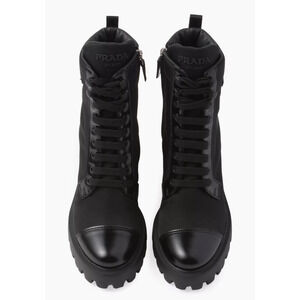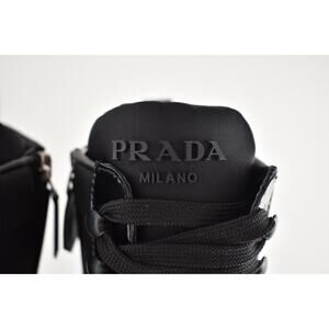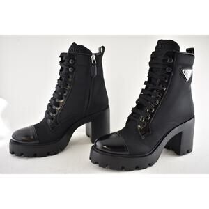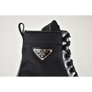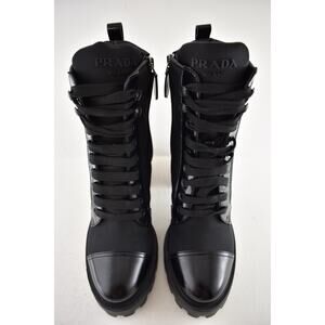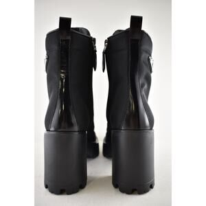 Prada 55MM Logo Lug Sole Platform Black Re-Nylon Leather Ankle Heel Boot 37.5