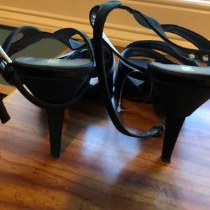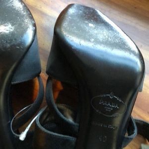 Beautiful Black and leather ankle strap sandles,From prada. Made in italy. European size 40. Us size 10. The heel is 3 inches.