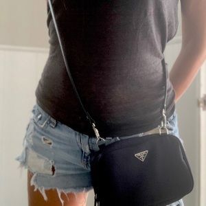 LCRestore is a luxury handbag restoration service. Originally a Prada pouch converted by adding a custom made cross-body strap.