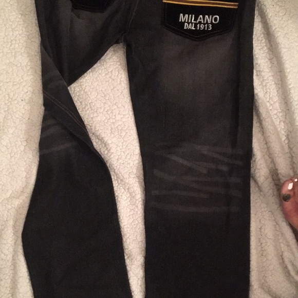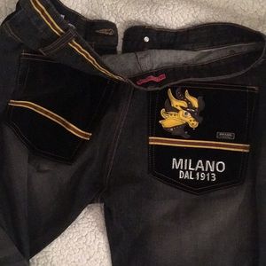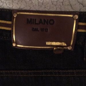 Prada Milano jeans with black velvet pockets front and back