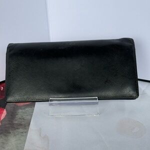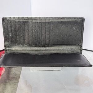 Prada black leathered long wallet with card holders and zippered pocket for change. Silver hardware