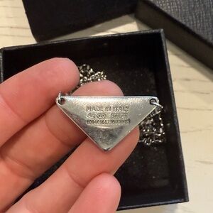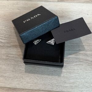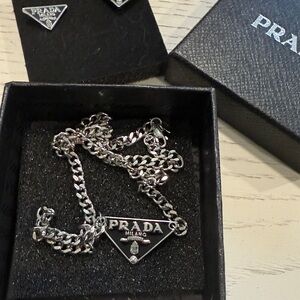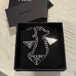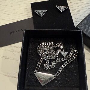 Authentic Prada earrings and necklace set. 925 silver and black enamel. Comes with box. Very good pre-owned condition.