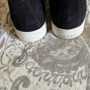 Elegant black suede chukka boots by Prada. Stylish and versatile for any occasion.