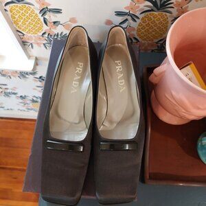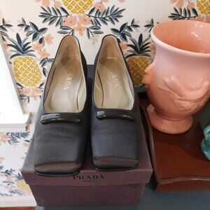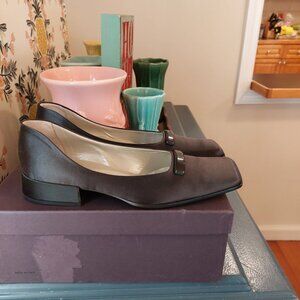 Satin charcoal grey vintage Prada shoes. 1998 from Saks