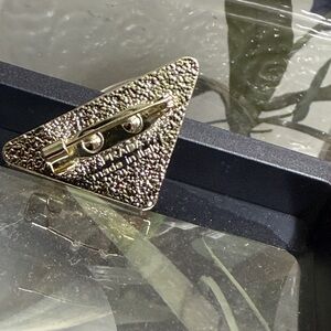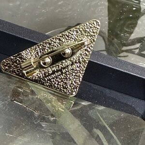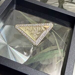 New Prada brooch with gold and silver hues. Adorned with sparkling details.
