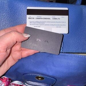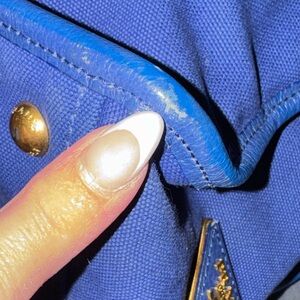 Gorgeous cobalt blue Prada Canada Cinghiale bag is amazing condition! Suede interior is pristine and the only callouts are shown in pics… slight rubbing on corner and small mark on canvas. I haven’t tried cleaning either as I didn’t think it would be worth it because they aren’t noticeable unless you’re looking for callouts. Included are official Prada cert of authenticity and strap to use as crossbody or shoulder bag. She is a beaut!!! I sad to see he go but knowing she’ll make another lucky person happy makes me happy. Others are going anywhere from $1500-$3500!! Get her while you can 💙