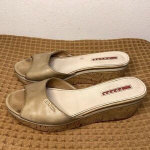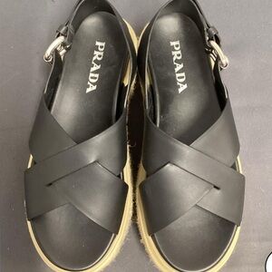 Prada, 7.5 US (38 EU), Brown Espadrille Sandals.